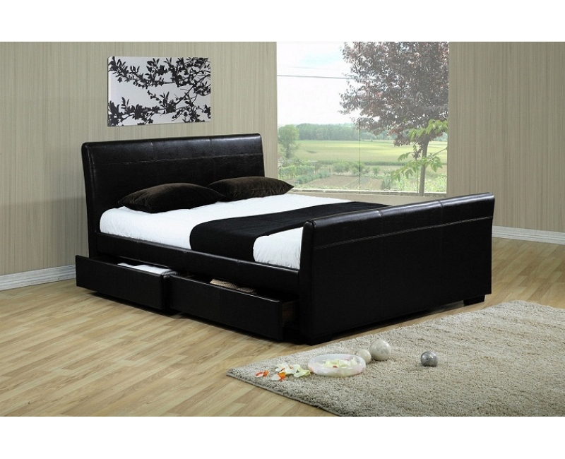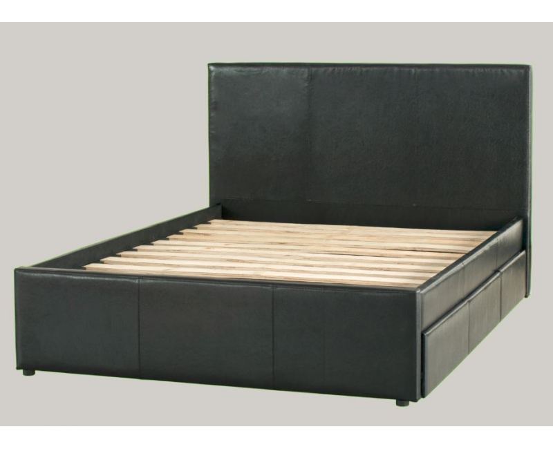 Deluxe Leather King Single Bed with 6 drawers- Black