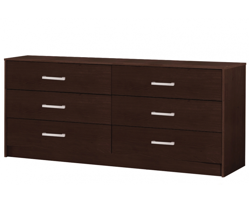 Do you find yourself with extra stuff around the bedroom that fall where they don't belong? A sleek and simple lowboy with six spacious drawers for all the extra items around your room which need to be stored. Or for all the small pieced clothing items which often get lost in your wardrobe. This piece takes little space from you wall area, leaving room for a TV to be placed on top or for any gadgets you'd like to display. Whatever your need, you will find this piece useful.